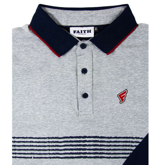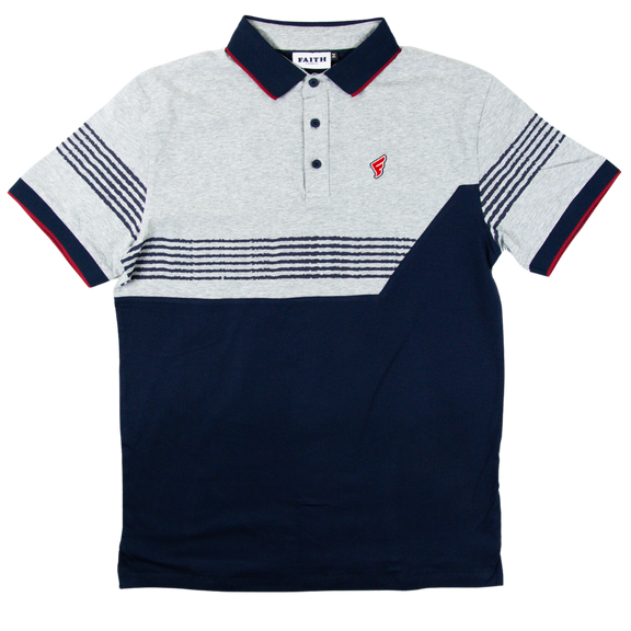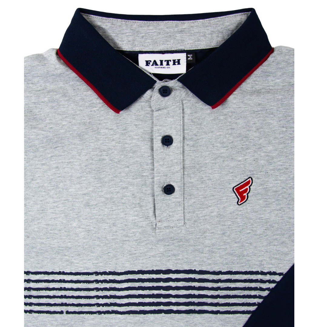 Grey & Navy Stripes Faith Golf Polo